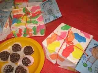 Escolhemos carimbar beijinhos coloridos...os carimbos foram feitos com batatas.Durante toda a semana as histórias foram dedicadas ao pai e aos beijnhos.