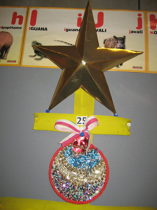 Ficou pronto hoje o nosso calendário do Advento...esperamos...esperamos que chegassem de casa todas as bolinhas...mas hoje, não esperamos mais...