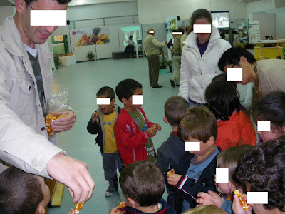 Na galeria fizemos um jogo muito giro, tinhamos que descobrir o que se escondia debaixo dos chapúes da bruxa Pantaleona (uma bruxa muito boa, que é nossa amiga e mora na floresta do convento), ele não pôde estar presente porque era dia de fazer limpeza! .