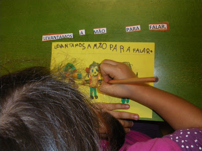 Escutamos muitas histórias de Natal e pintamos a rena Rudolfo, a do nariz brilhante.